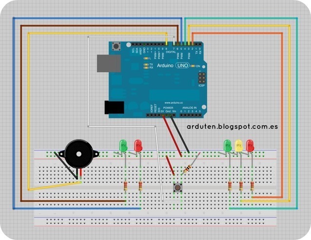 leds (rojo, verde, amarillo), que se encenderán progresivamente conforme